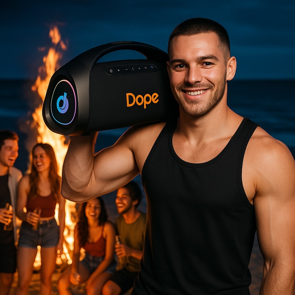 Unleash Powerful Sound Anywhere with Dope Sonic Boom Get ready to feel every beat and own every performance with our next-generation Bluetooth 5.3 speaker! Delivering an impressive 200W RMS output and a dynamic frequency range of 50Hz-20KHz, this speaker floods any space with rich, powerful sound. Thanks to the massive 7500mAh battery, you get up to 24 hours of nonstop music, making it the perfect companion for parties, outdoor adventures, or live performances.